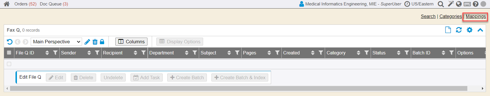 1. Click the Mappings link in the top right corner